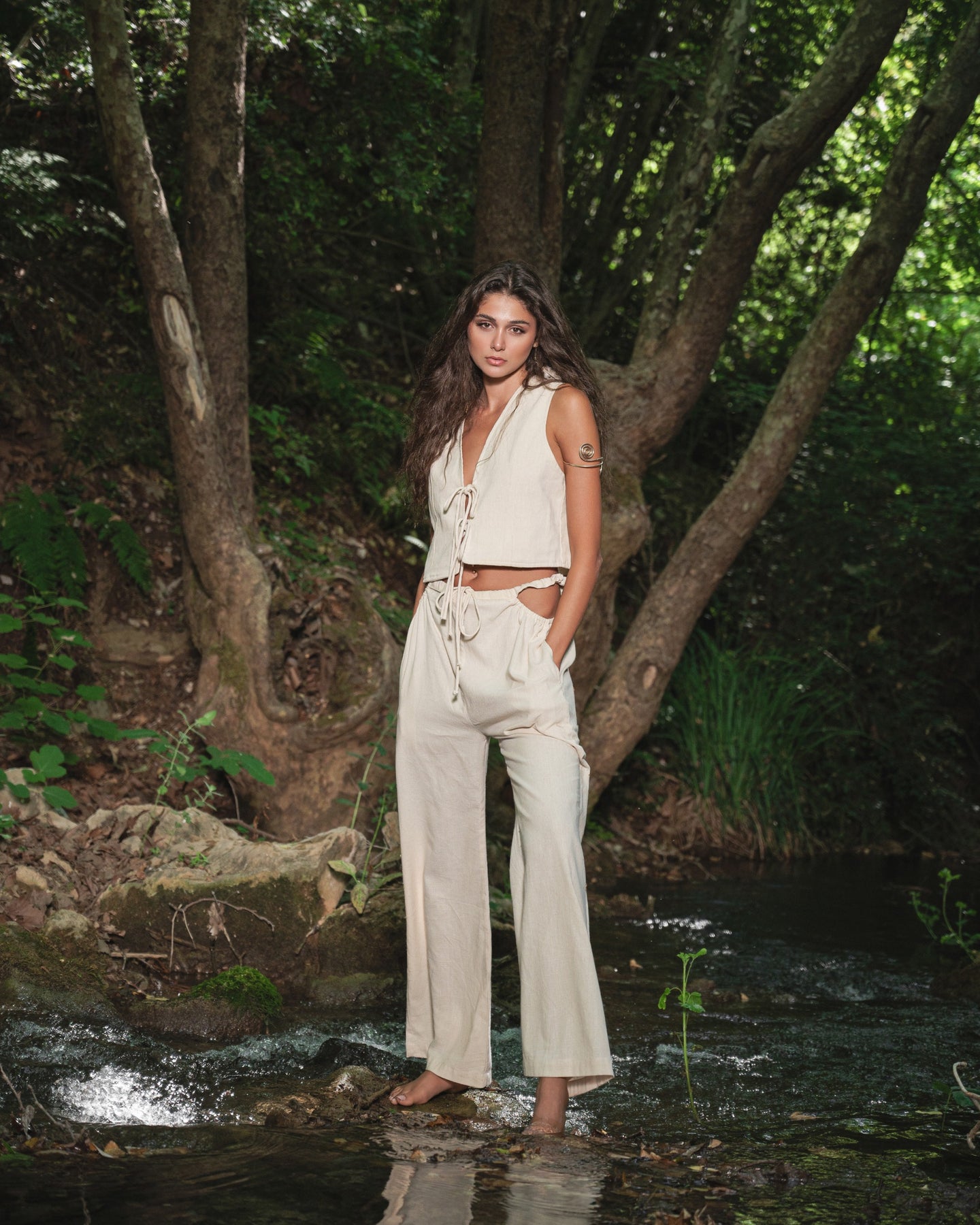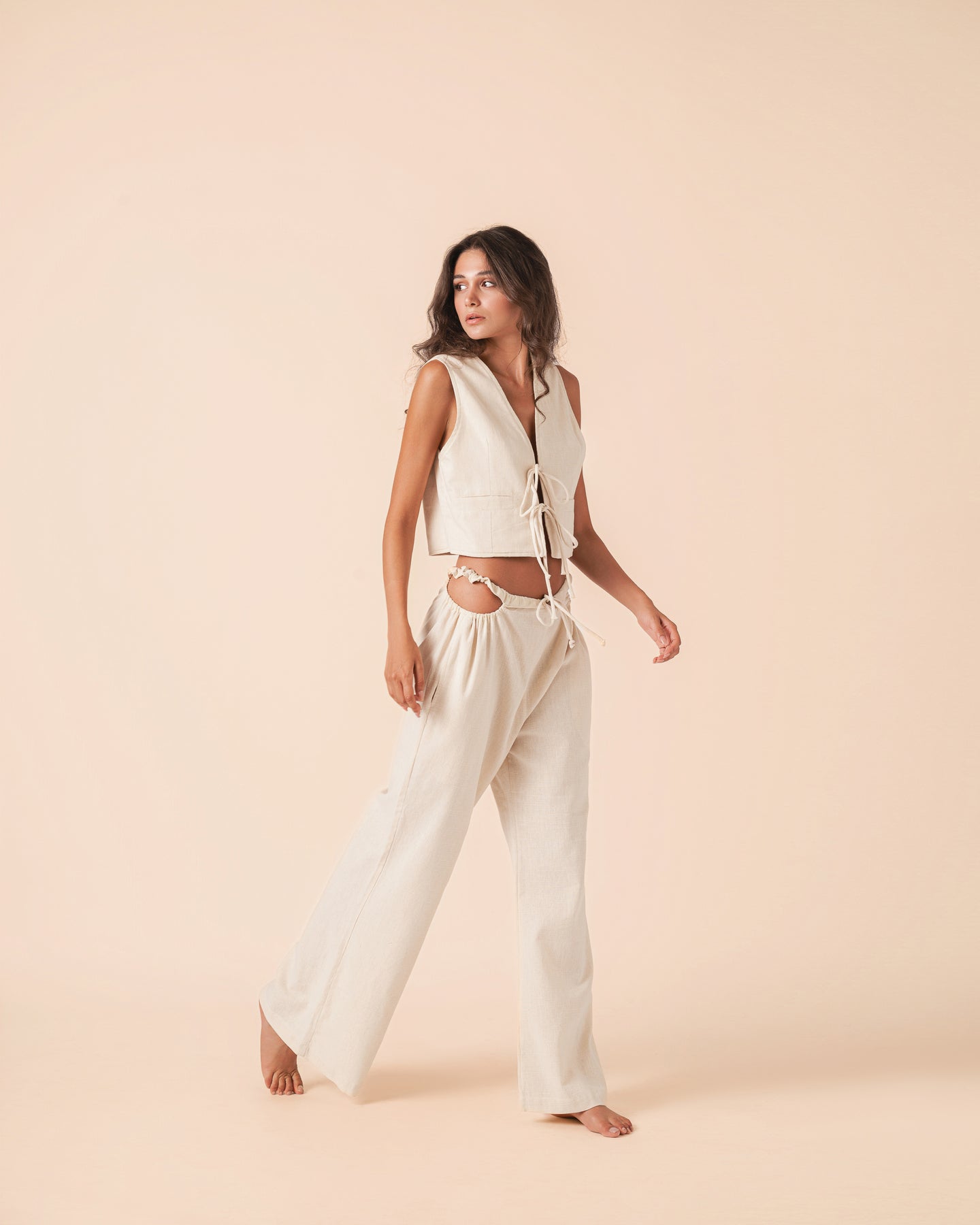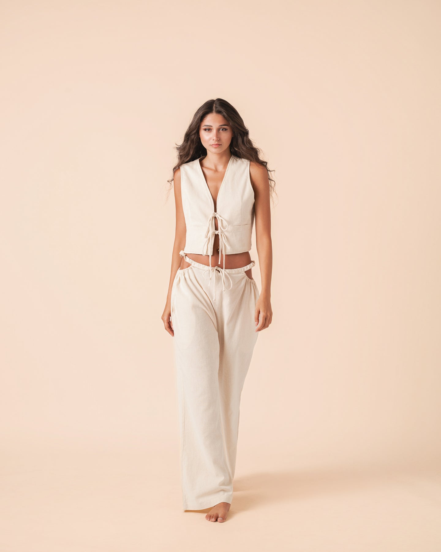 • Cutout Pant and Tie Front Vest Set